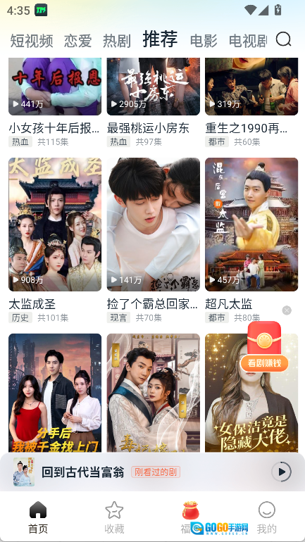 顶部设有【短视频】以及【推荐】、【恋爱】、【热剧】、【电影】、【电视剧】等栏目,要是不清楚该看什么剧,不妨进入推荐栏目里挑选一番。
