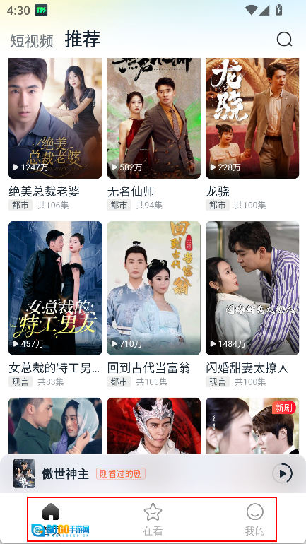 【海量短剧】各类短剧免费观看,涵盖都市激情、现代浪漫、时代逆袭等多元主题。