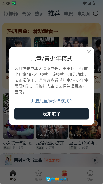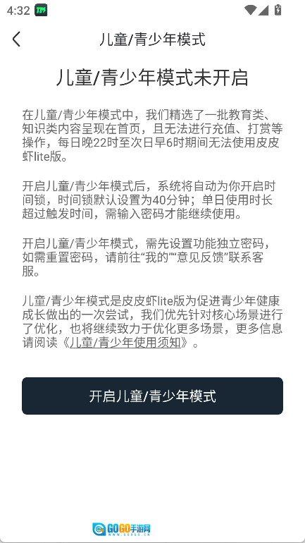 设置里可进行儿童/青少年模式设置。