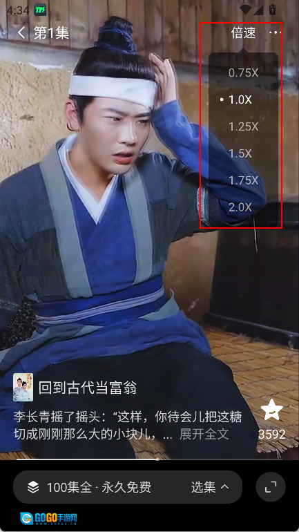 右上角可以选择倍速播放。