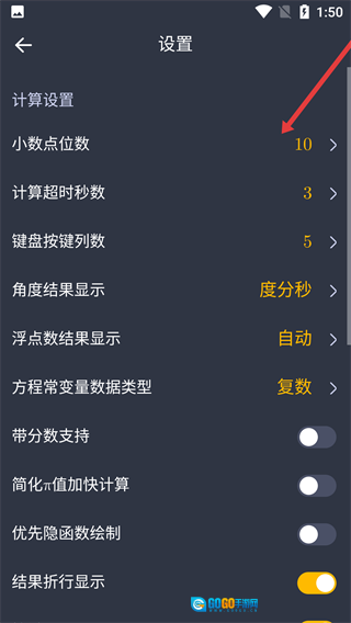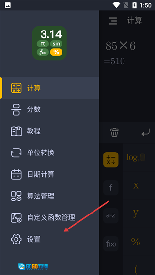 2、找到【设置】选项并点击,进入计算器的设置页面。