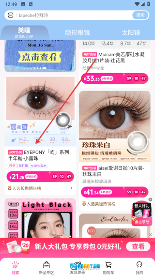 站内设有科普专区,指导如何正确选购及使用隐形眼镜