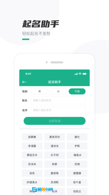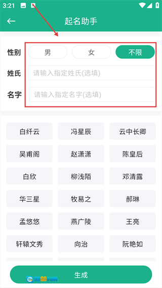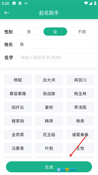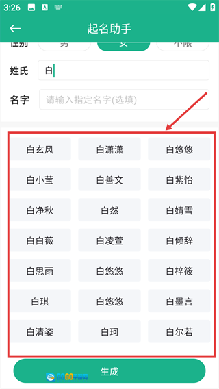 4、系统会生成对应的名字,用户可以从中挑选自己喜欢的名字。
