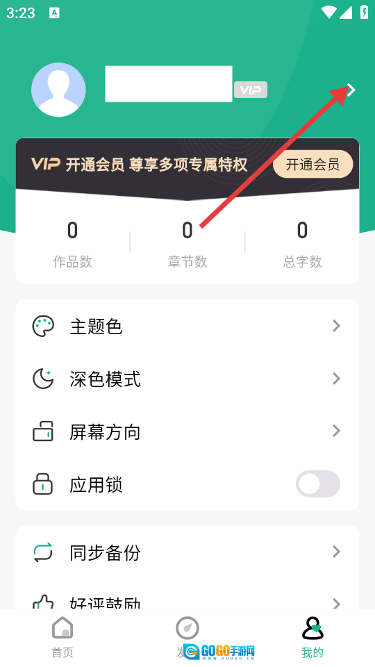 2、在个人页面点击右上角的箭头图标,即可进入用户信息页面。