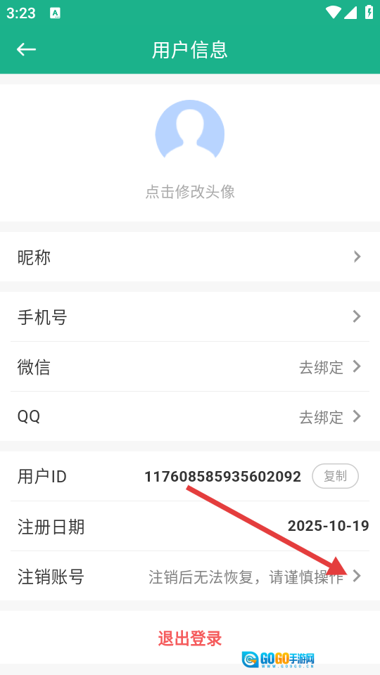 3、在用户信息页面找到并点击【注销账号】选项,随后进入账号注销说明页面。