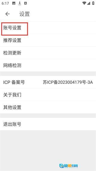 3、进入【设置】页面后,在功能列表里找到【账号设置】选项,点击它就能进入账号相关的设置页面。