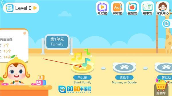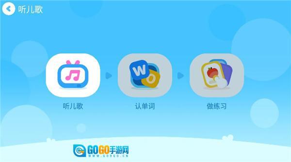 2、点击“听儿歌”功能模块,即可进入互动式英语学习页面。