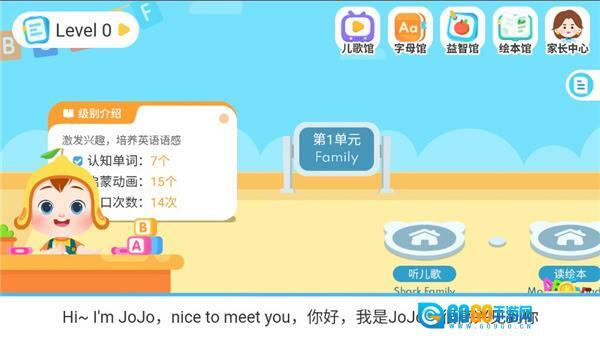 1、前往应用商店下载并安装JoJo英语启蒙应用,安装完成后打开该应用,进入其主界面。