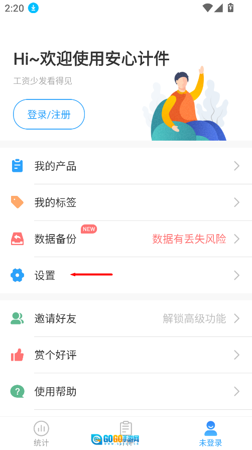 打开安心计件App后,点击界面右下角的人形头像图标,即可进入个人功能管理页面。