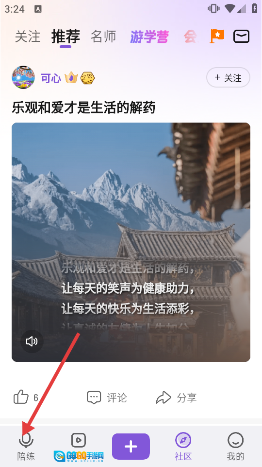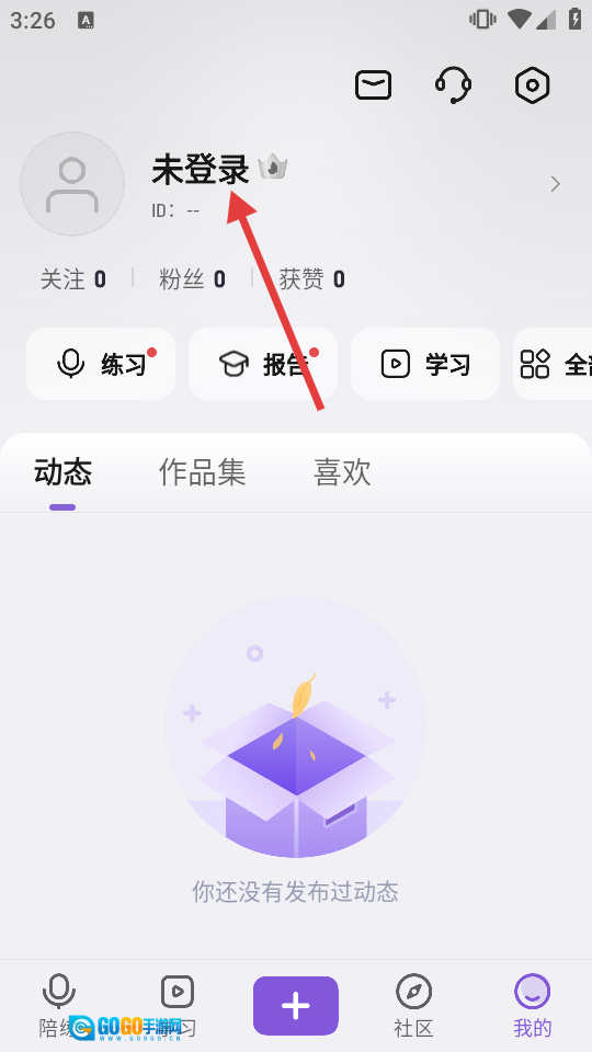 1、打开【声音全能】界面,找到界面下方的【社区】选项,点击进入社区界面。