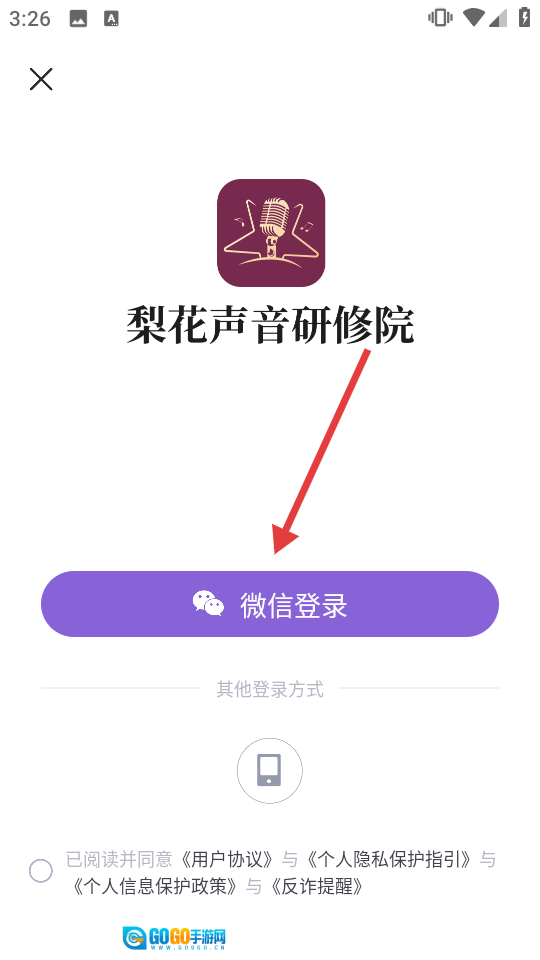 4、登录页操作步骤:勾选相关协议后,点击【微信登录】按钮,即可完成登录流程。