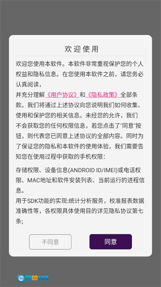 1、阅读用户协议和隐私政策之后点击同意即可进入;