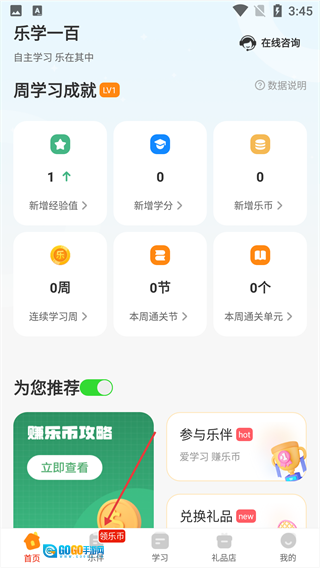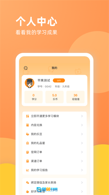 这个模块整合了我的资料、我的学分、我的乐币、我的经验值、我的收藏等功能。经验值累积得越多,对应的等级就会越高。温馨提示:如果遇到问题,也能在这里找到客服电话,随时联系我们专业的服务老师协助解决。