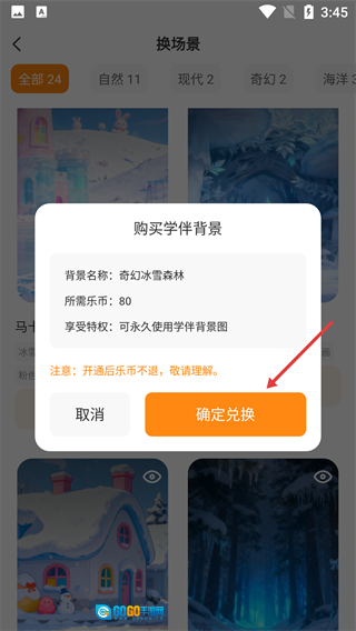 4、页面弹出确认窗口后,点击【确定兑换】按钮,即可完成学伴背景的兑换操作。