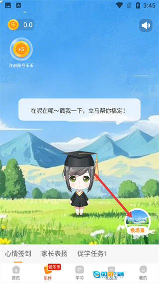 2、在【乐伴】页面,点击右下角【换场景】按钮。