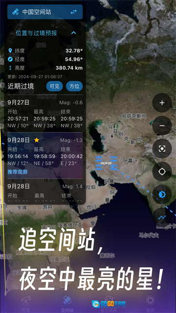 通过软件还能获取空间站的信息,你可以快速掌握空间站的高度、经纬度等数据。