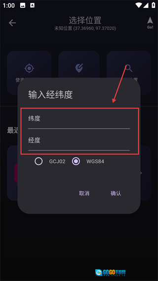 2、点击【手动输入经纬度】选项,会弹出【输入经纬度】的填写弹窗。