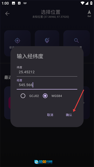 3、在【输入经纬度】的弹窗里,准确填写对应的【纬度】和【经度】数值。