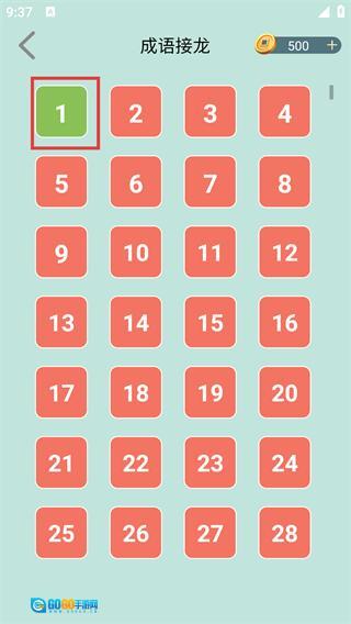 2、点击红框标注的第1关,就能选择对应的关卡开启成语接龙挑战。