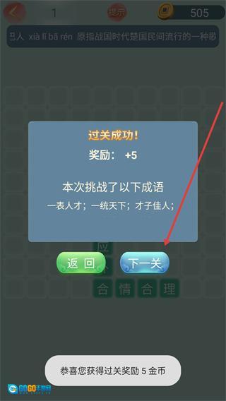 4、弹窗显示【过关成功】后,点击箭头所指的【下一关】按钮。