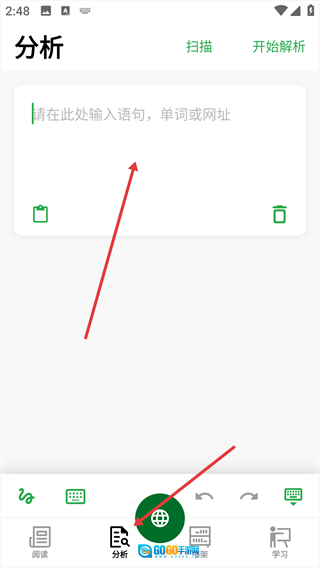 1、在【分析】页面中,填写需要解析的语句内容。