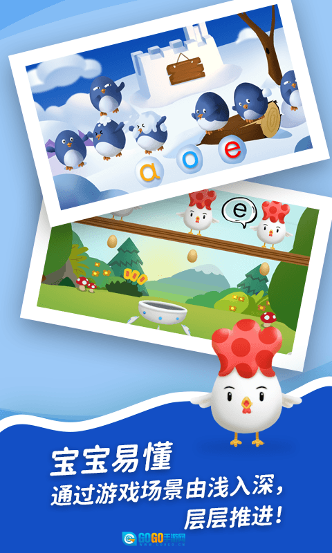 2、借助【游戏场景-冰雪-农场】这一载体,从基础的a-o-e入手,通过场景的逐步推进,让宝宝能够更轻松地理解和学习。