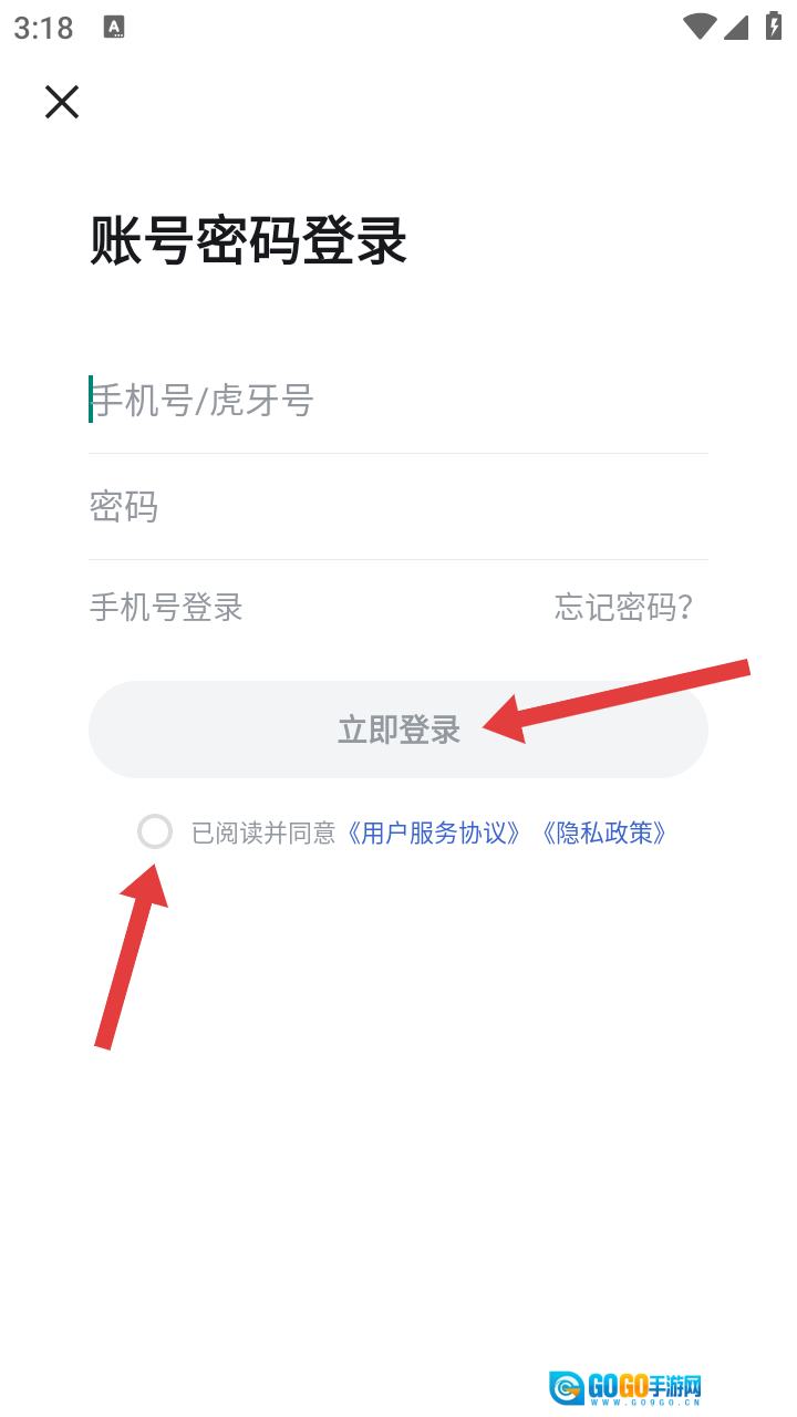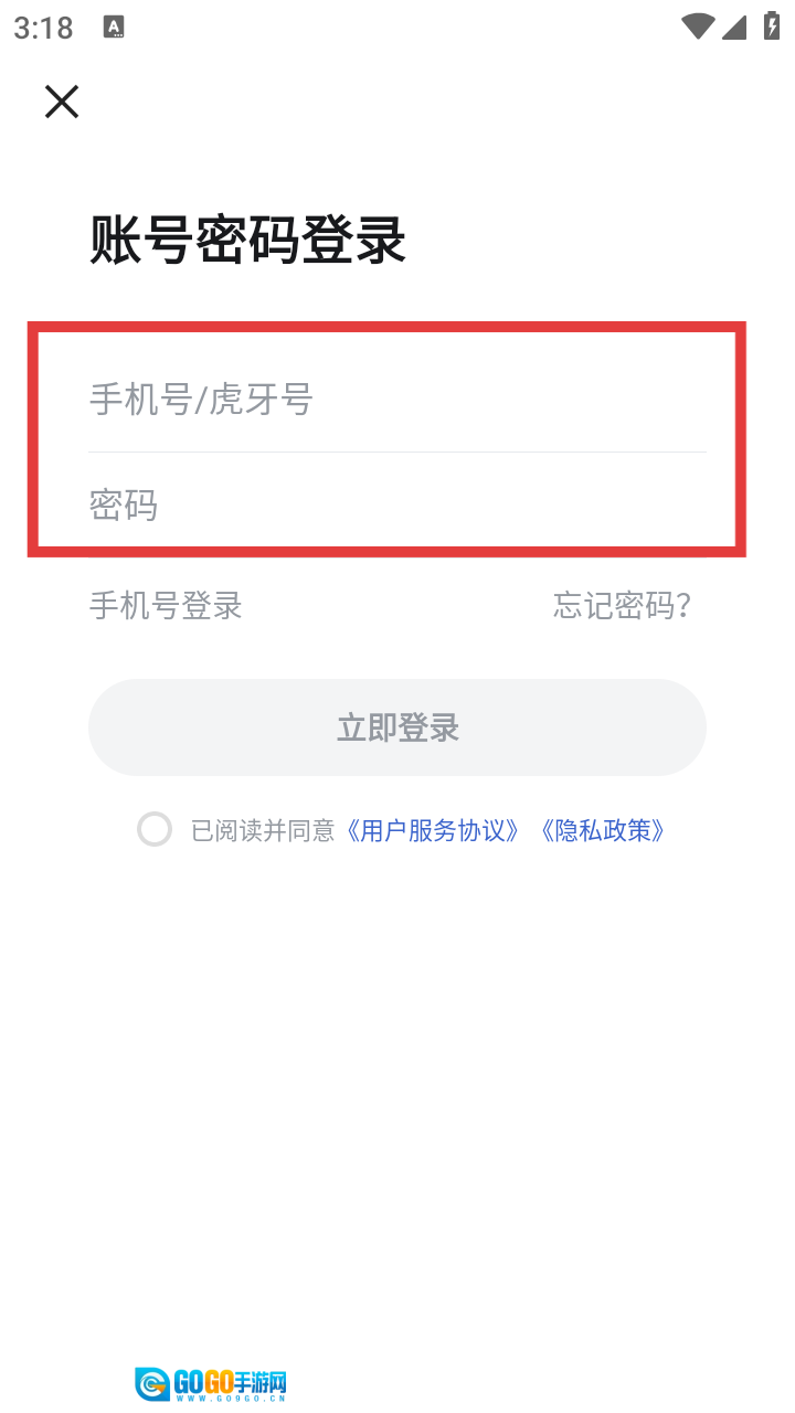 2、用户在方框内输入手机号和密码即可进入下一步。