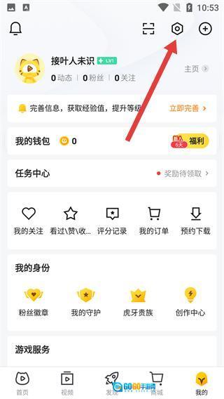 2、进入个人页面后,点击右上角的【设置】图标,即可进入设置功能界面。