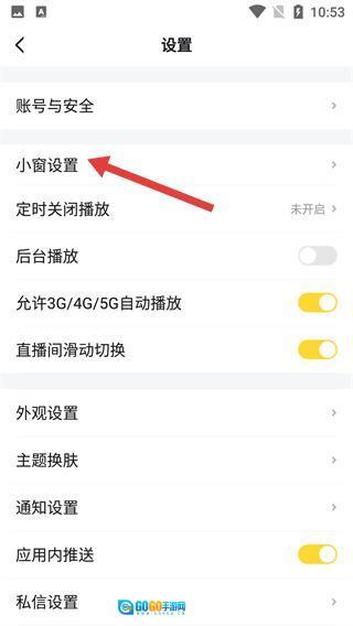 3、进入设置界面后,找到并点击【小窗设置】选项,即可进入小窗相关的配置页面。