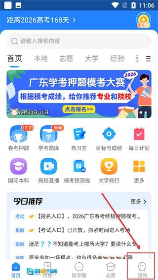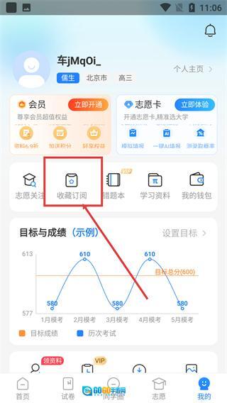 1、进入应用首页后,点击底部导航栏的【我的】选项,即可进入个人中心页面,在这里可以查看会员权益、志愿卡以及各类学习功能的入口。