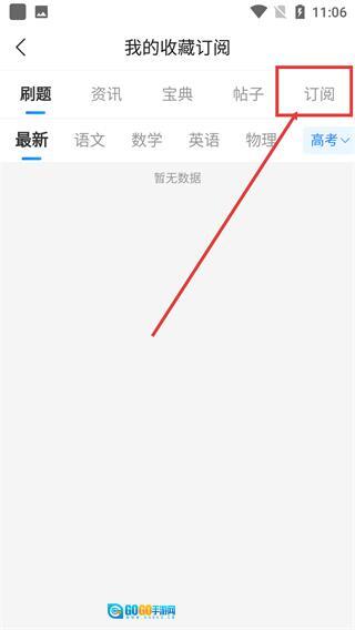 3、进入收藏订阅页面后,点击顶部的【订阅】标签,就能查看已订阅的内容;若当前没有订阅内容,则会显示“暂无数据”。