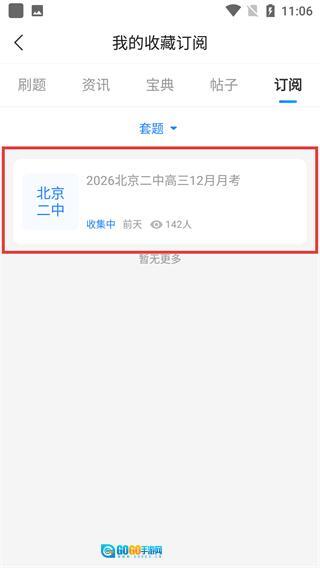 4、在订阅标签页中,能够查看【2026北京二中高三12月月考】这套试题,知晓其收集状态以及参与人数等相关信息。