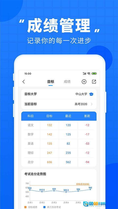 4、开展成绩管理工作时,需先录入各阶段考试的分数,接着查看系统智能生成的弱点分析报告,最后根据报告结果添加具有针对性的每日学习计划。