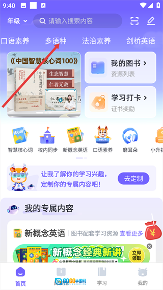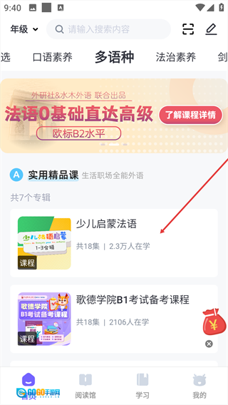 提供权威分级阅读,北外专家微课,增进语言素质。
