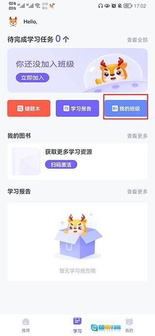 一、打开外研U学学生版应用,进入学习界面后点击“我的班级”选项。