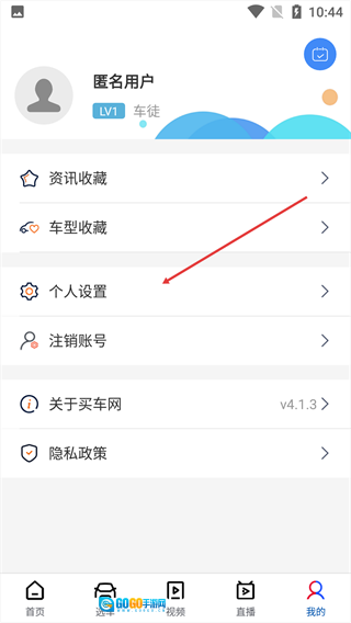 2、切换至个人页面,点击【个人设置】。