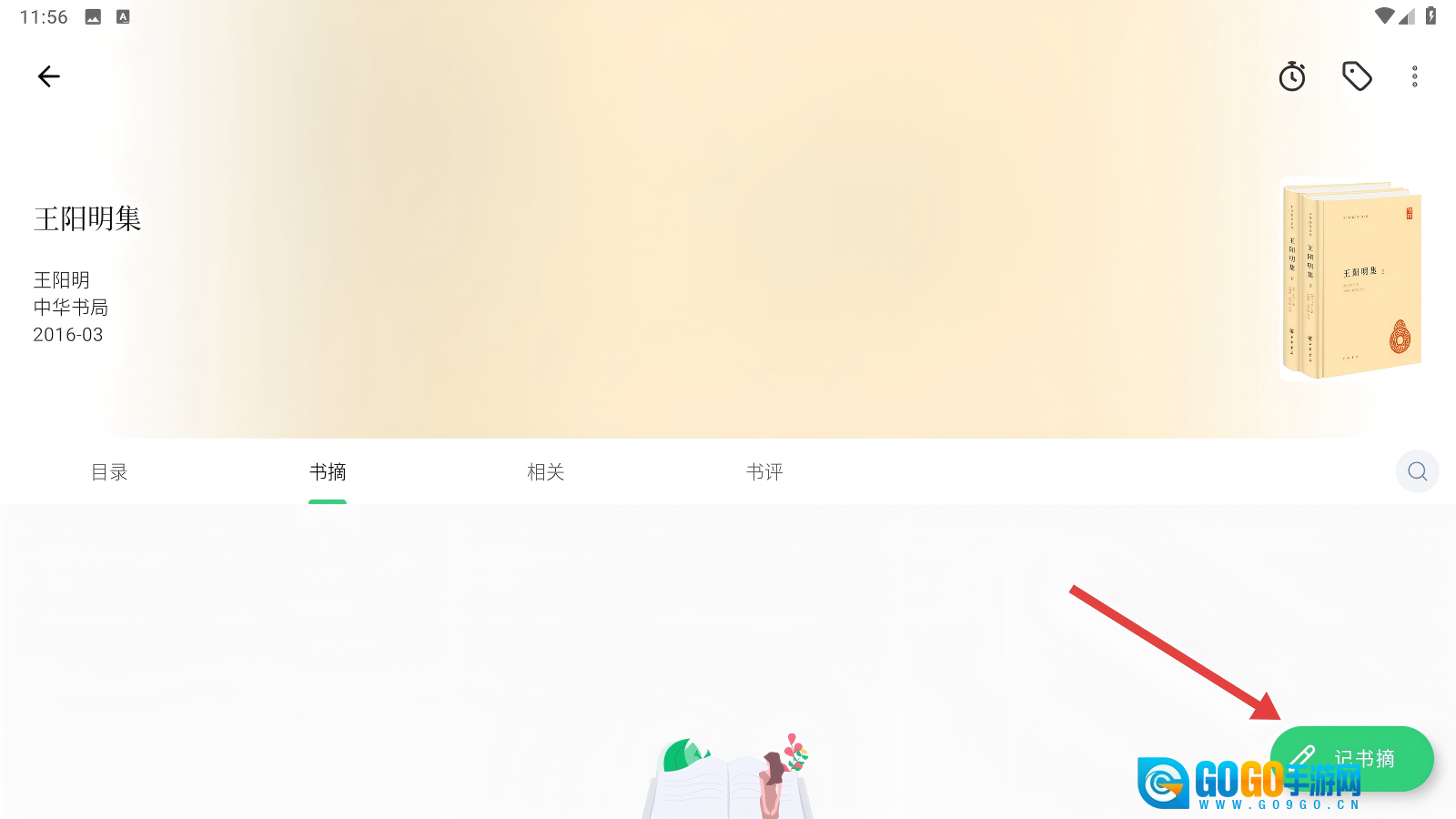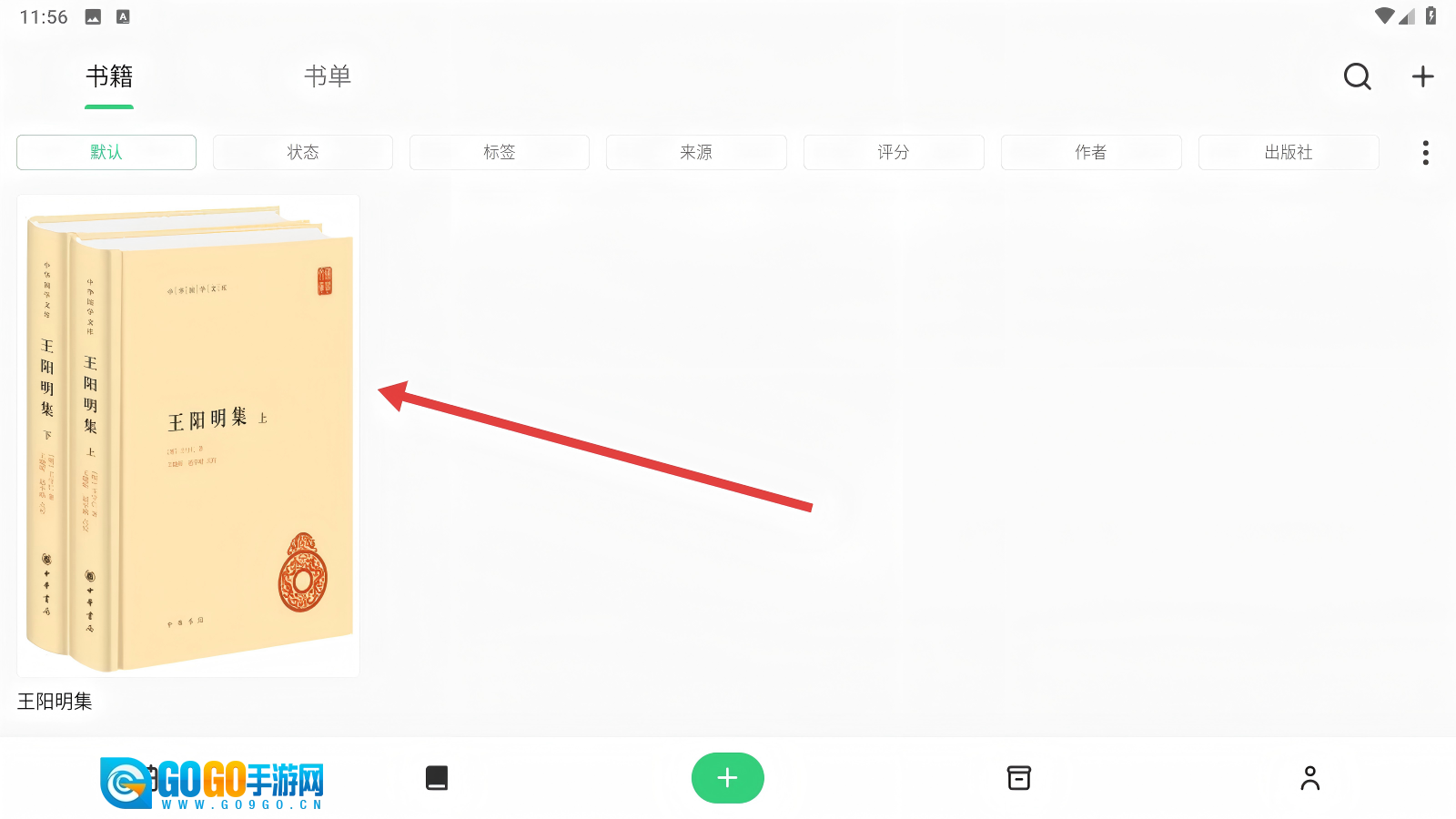 2、进入书籍页面后,找到你想记录书摘的那本书(例如《王阳明集》),点击该书即可进入详情页。