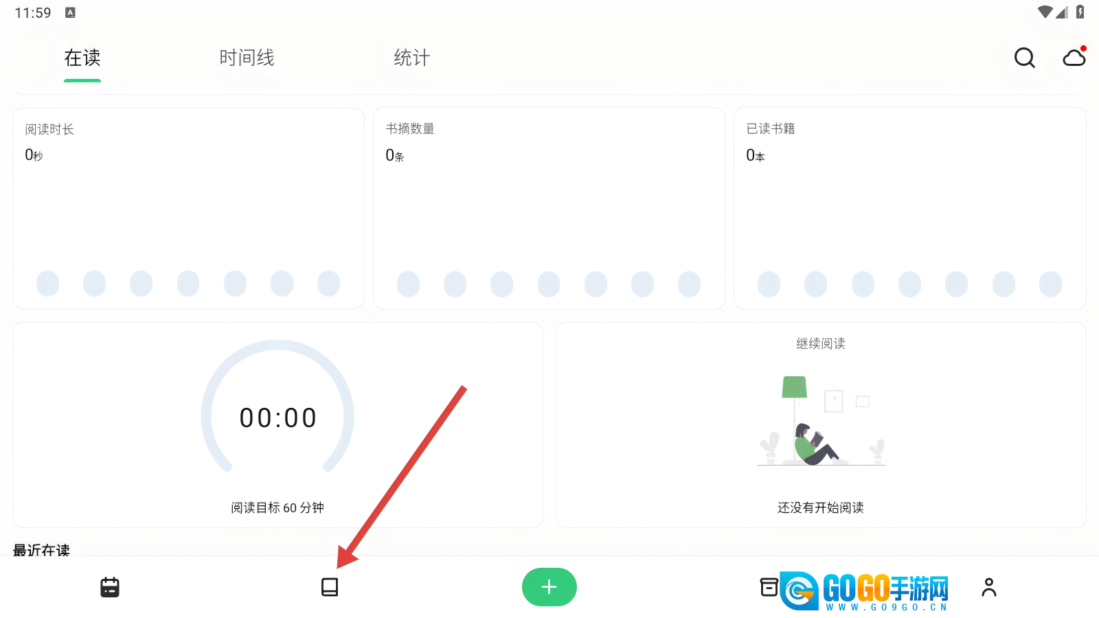 1、打开【纸间书摘】App,点击底部的书籍图标,即可进入书籍管理页面。