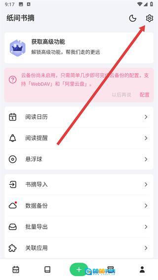 1、打开书伴阅读,进入纸间书摘页面后,点击右上角的设置按钮。