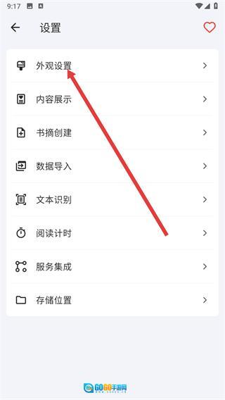 2、进入设置页面后,找到外观设置相关选项,点击该选项进入对应的设置界面。