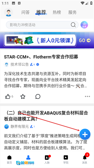 2、进入社区页面后,点击右下角的“+”按钮,系统会弹出可供选择的发布内容选项菜单。