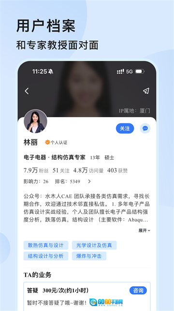 2、专家对接高效直接:平台聚集了各领域的顶尖技术人才,支持用户与专家进行一对一的交流沟通以及深度专业探讨,助力用户更高效地攻克专业难题、突破创新过程中的瓶颈。