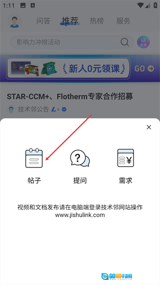 3、在弹出的选项列表里,点击【帖子】这一选项,即可进入帖子编辑界面。
