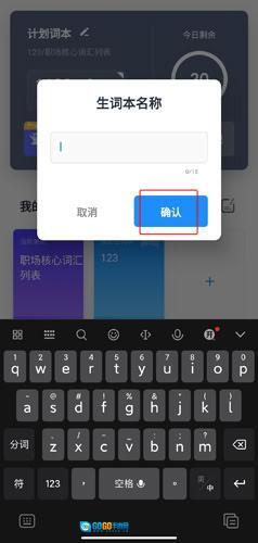 3、输入生词本名称,点击确认按钮。