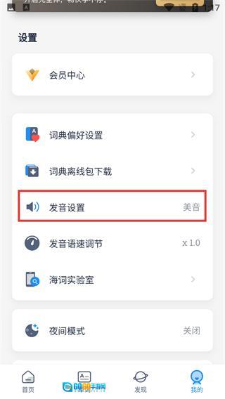 进入个人中心页面后,找到并点击【发音设置】选项。