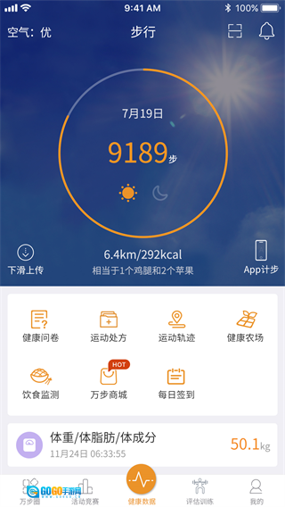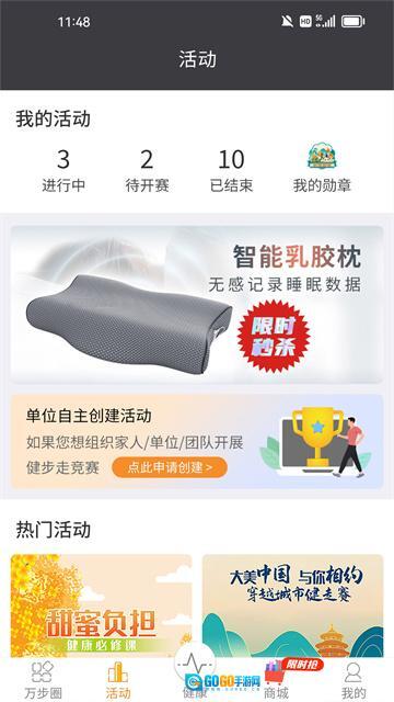 万步健康是一款智能计步应用,操作便捷,打开后即可随时查看健走数据,包括步数、距离、消耗热量等;用户还能随手拍摄健走途中的风景,并同步分享至社交平台。此外,应用会实时更新城市健走节、主题挑战赛等各类健走赛事的进展,用户可自由选择参与,也能为好友加油,实时了解赛事动态。