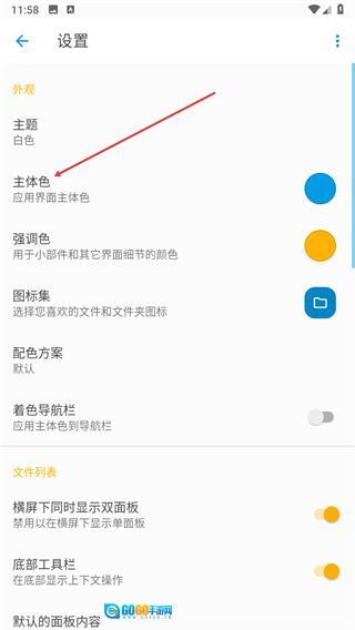 3、进入设置页面后,在外观分类里找到主体色选项,点击该选项即可弹出颜色选择的操作面板。
