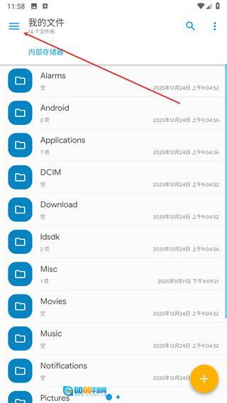 1、进入Solid Explorer的我的文件页面,点击左上角的三条横线图标以展开侧边栏菜单。