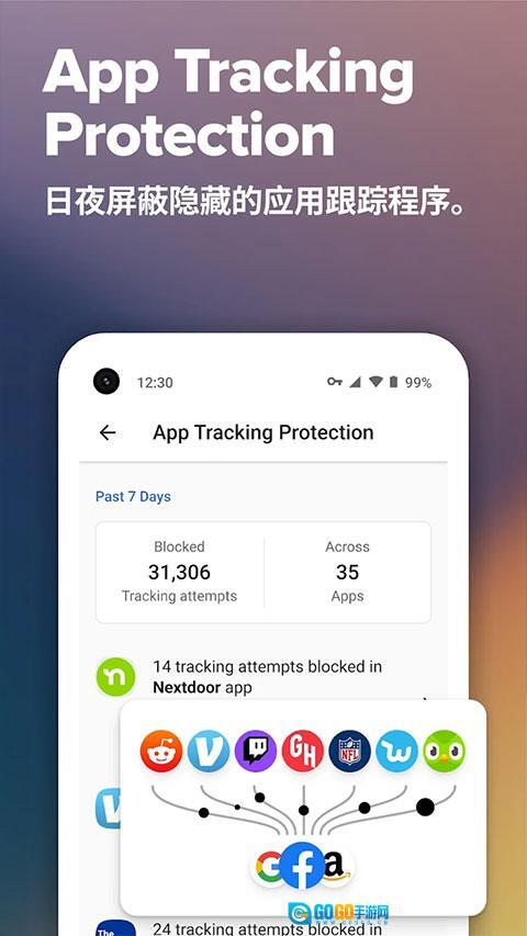 5. 应用跟踪拦截功能:可对其他应用在后台的追踪行为进行监控,并阻止其跨应用收集数据。