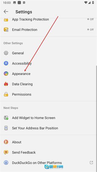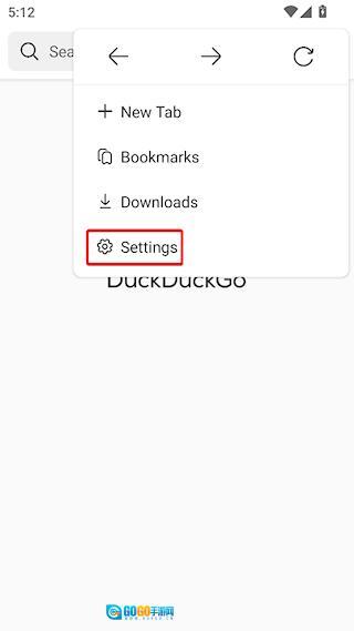 1、启动DuckDuckGo,点击右上角的三个点图标,选择“settings”选项